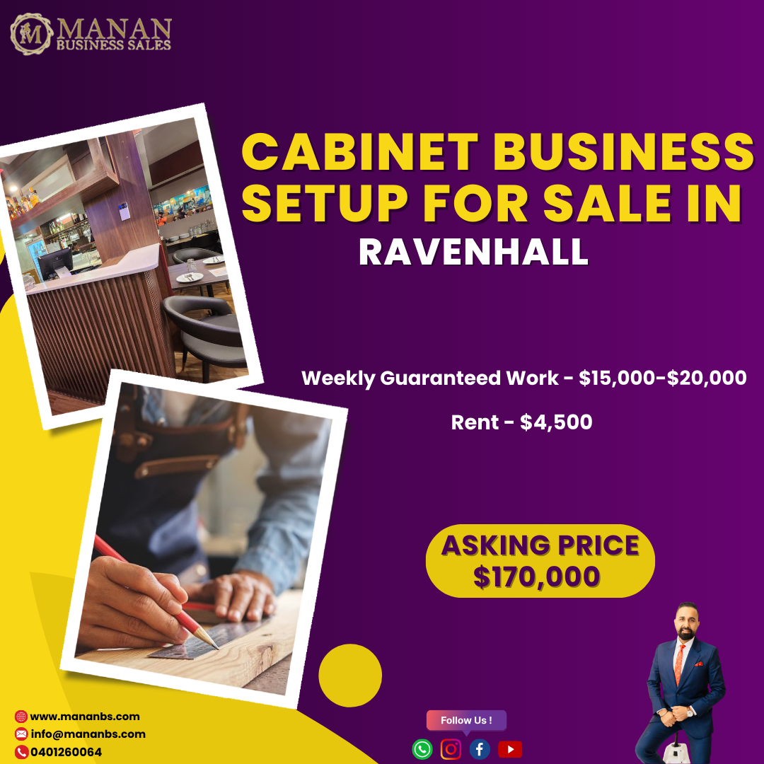 Manan Business Sales proudly presents an outstanding business for sale—a thriving cabinet and carpentry business located in Ravenhall. This well-established enterprise, known for its expert craftsmanship and comprehensive services, offers a unique chance to enter or expand within the lucrative carpentry industry. With a strong local reputation and a complete setup, this business is primed for continued success.